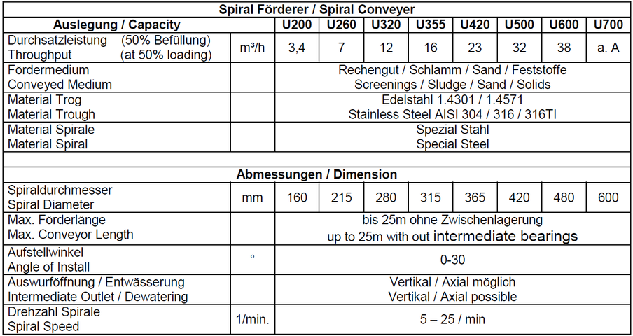 Spiralförderer U - Wa-Tech => Wasser & Abwasse